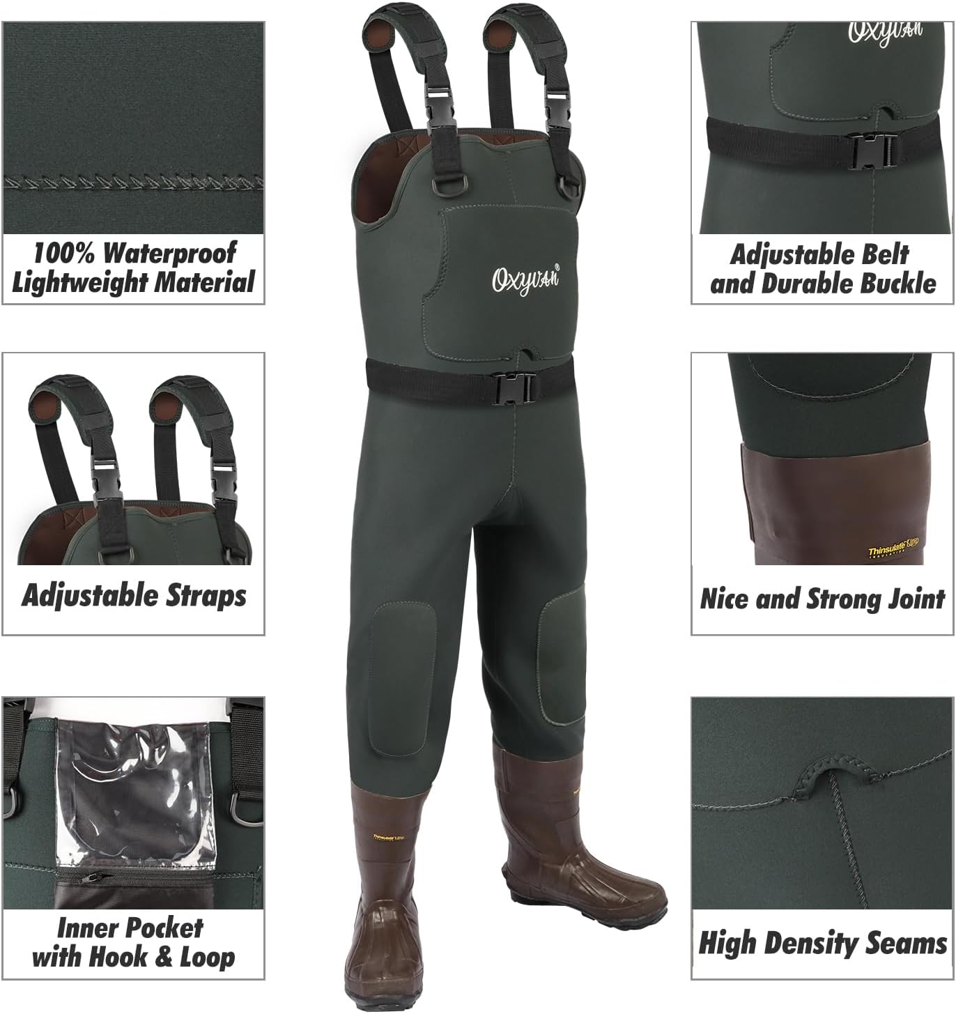 Don’t let wet and cold conditions hinder your hunting or fishing experience. Invest in the OXYVAN Duck Hunting Waders with 200G Rubber Boots Insulated, Neoprene Fishing Chest Waders today and gear up for your next outdoor expedition with confidence and comfort.